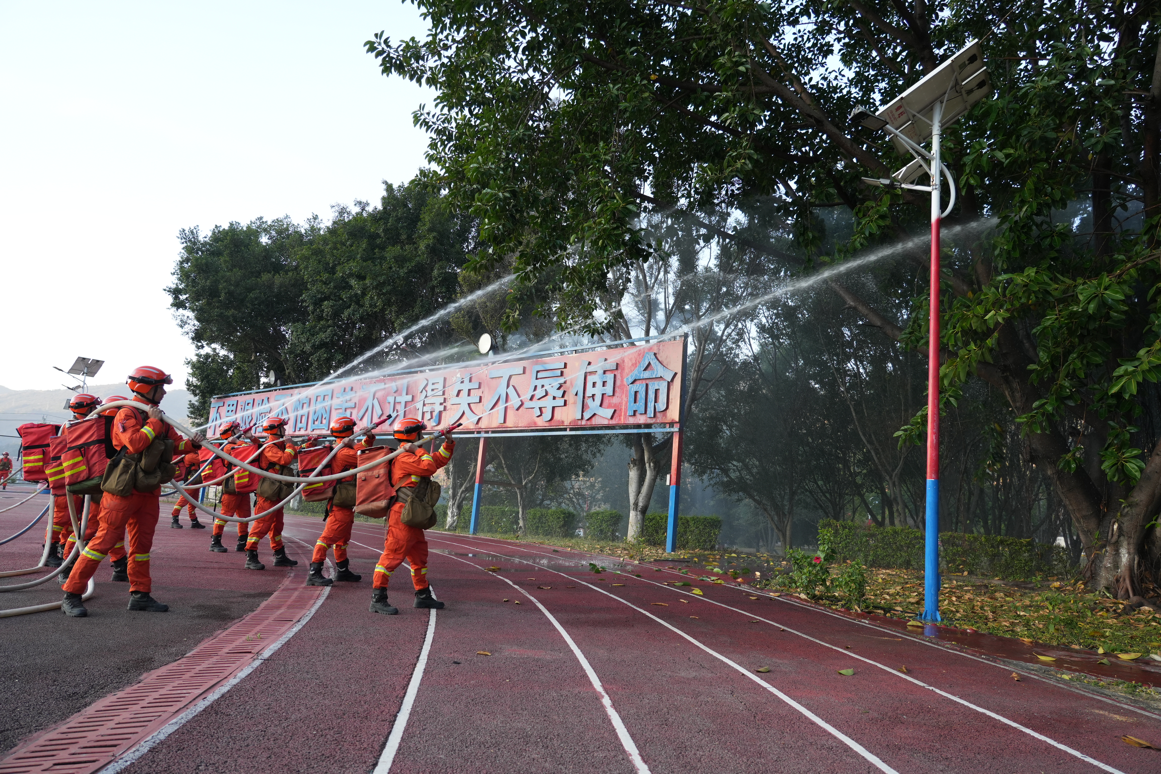 图为消防员测试装备