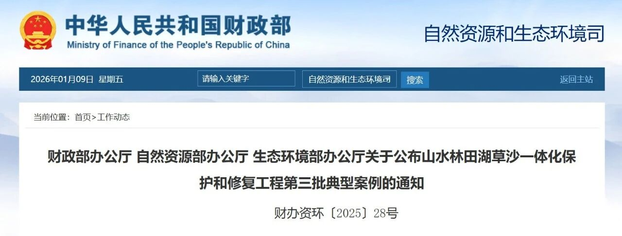 近日,财政部、自然资源部、生态环境部联合发文,公布山水林田湖草沙一体化保护和修复工程第三批典型案例,av国
