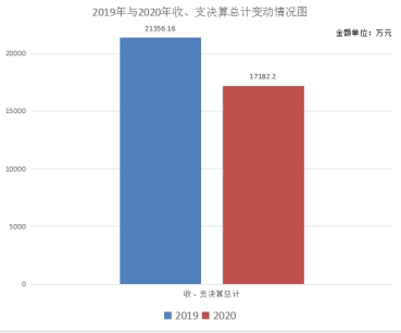 2020年度收、支总计为17182.20万元,与2019年相比,收、支总计各减少4173.96万元,下降19.54%。主要变动原因是2020年安排的一次性项目经费较2019年减少且压减了一般性支出预算。